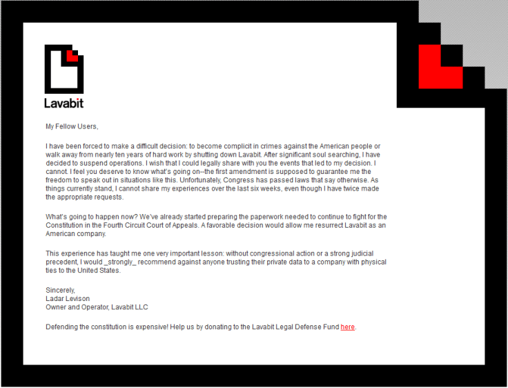 See also this Guardian UK article: http://www.theguardian.com/technology/2013/aug/08/lavabit-email-shut-down-edward-snowden