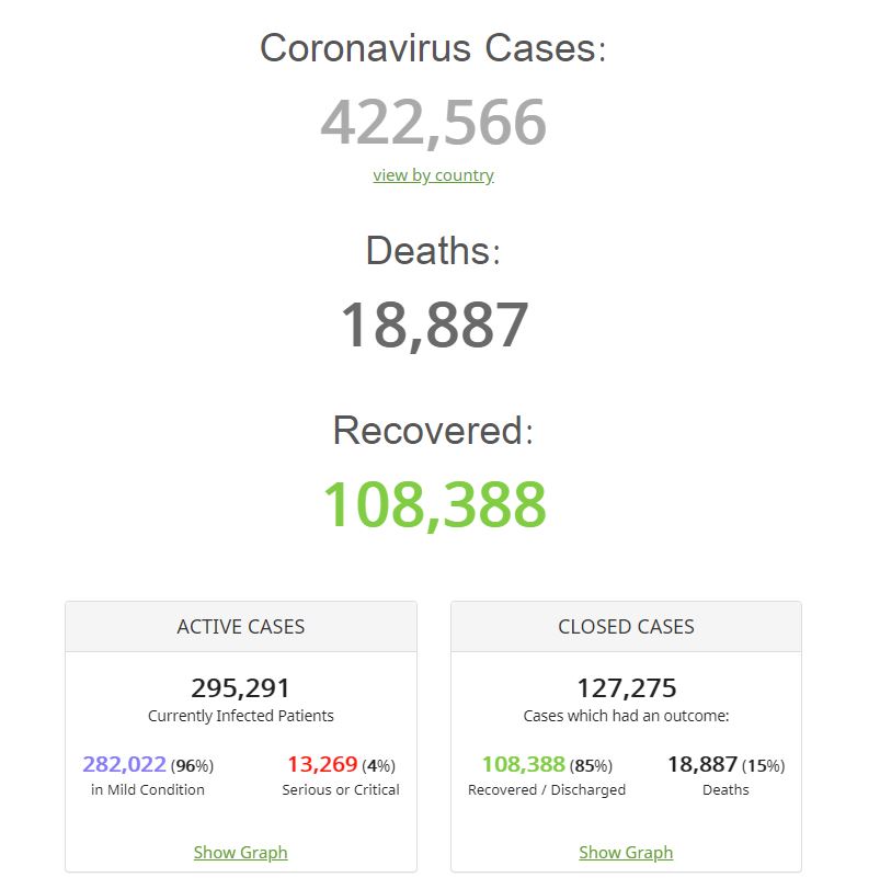 You can keep track of this on Worldometers Coronavirus live web page if you are interested. Well, it is ‘live’ as often as they receive fresh data from world government sources.