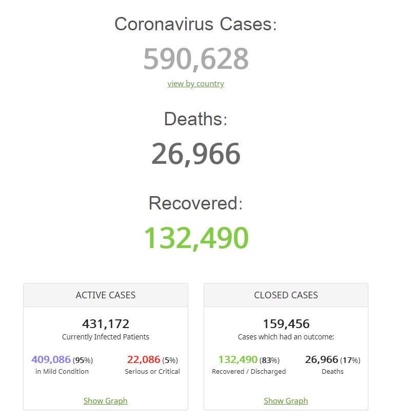 The COVID-19 fatality rate has now risen to 17%; serious or critical active cases remain at 5%.