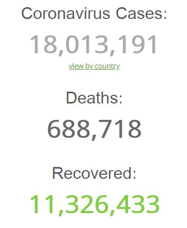 Well, the deaths didn’t reach half a million by the end of June as I anticipated – the reason for which is a question that still needs to be answered – and while it may be more than a month it is certainly less than two to have reached the 700,000 mark.