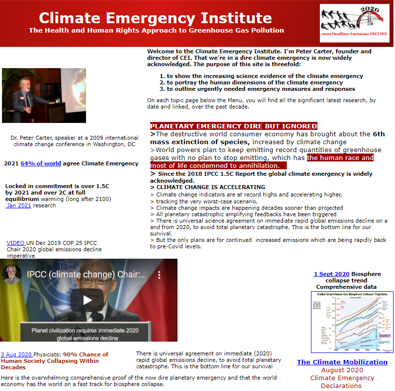 Because this is such a bold statement I want to provide some background. The gist of the logic is covered in the image below, taken from a recent post of mine. General background (not yet widely known) comes from the Climate Emergency Institute – founded by Peter Clarke, an expert IPCC Reviewer who recently said in a video interview “1.5°C is a disastrous world” – meaning ‘disastrous to live in’, and “2°C is an impossible world” – meaning ‘impossible to live in’. He also said – may not be a direct quote – “Billions of people are going to die”. Now, you may not trust someone who speaks virtually without moving his lips (a rule I generally stick by), but in this case I’m pretty sure he knows what he is talking about.