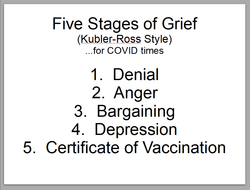 As a last reminder, I made the image below, reflecting an idea I found today on the Andrei Martyanov blog (where you will find very many interesting things to read), because the only available version (that I know of) of a Kubler-Ross style ‘Five Stages of Grief’ for COVID times, is to be found there and it is in Russian. I have no means of determining who the originator of that image was/is.