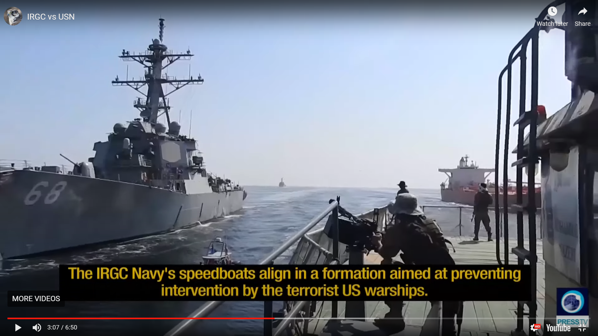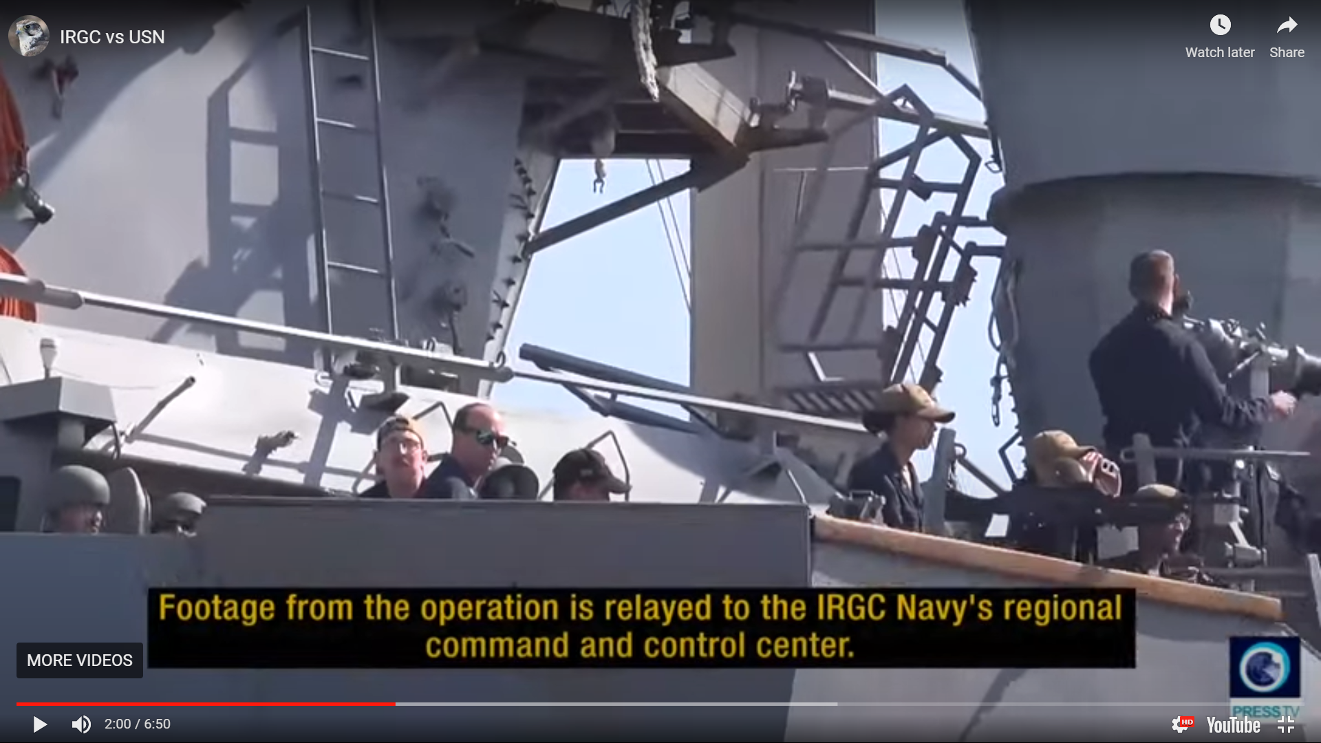 Who, or what, is this motley crew, watching on from an upper deck on the closest USN destroyer? They certainly do not look like they are regular USN personnel. Does every USN vessel have its bunch of agency ‘commissars’? Or were they expecting trouble?