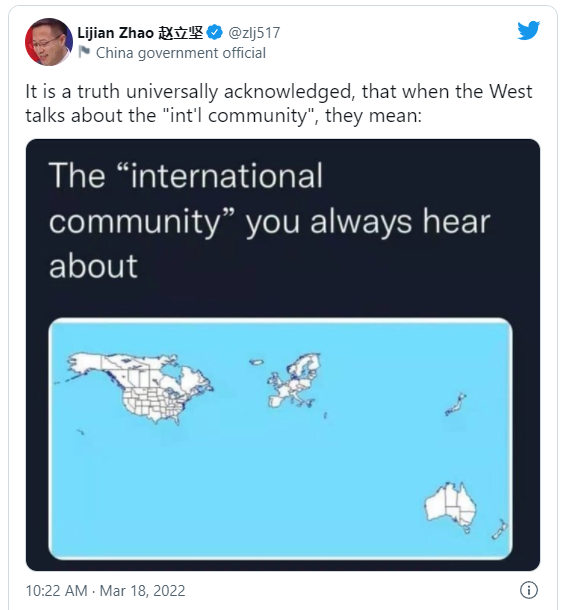 ‘Chinese foreign ministry spokesperson trolls US with ‘international community’ meme’ – RT