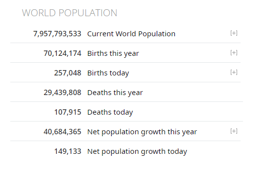 The net growth in population so far this year (the difference between annual births and deaths) is therefore a little under 40.7 million