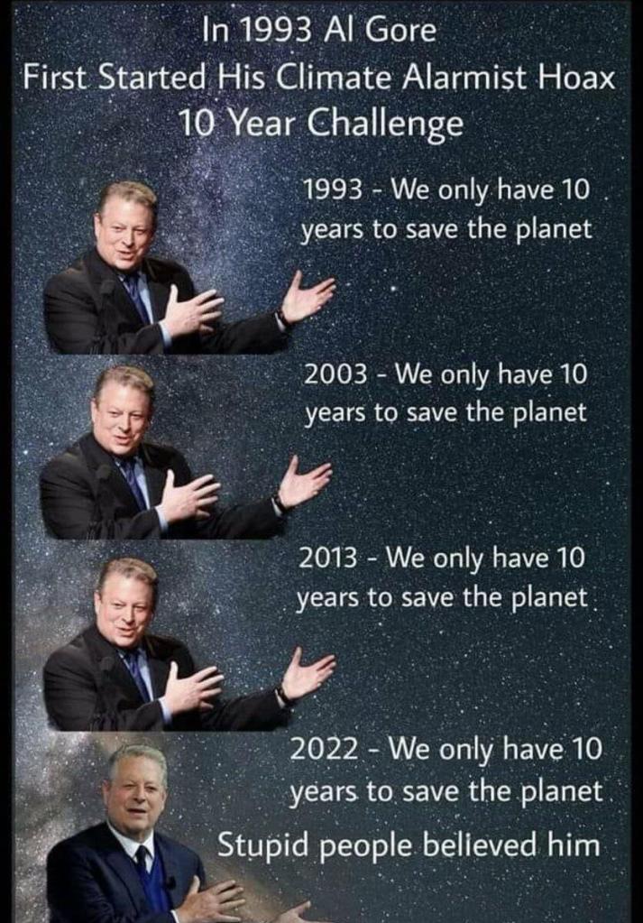 Enough of this climate alarmist nonsense. We need to come to our senses, recognise that the planet can take care of itself (while completely disregarding us and our activities) and put a stop to all those influencers who want to kill us off.