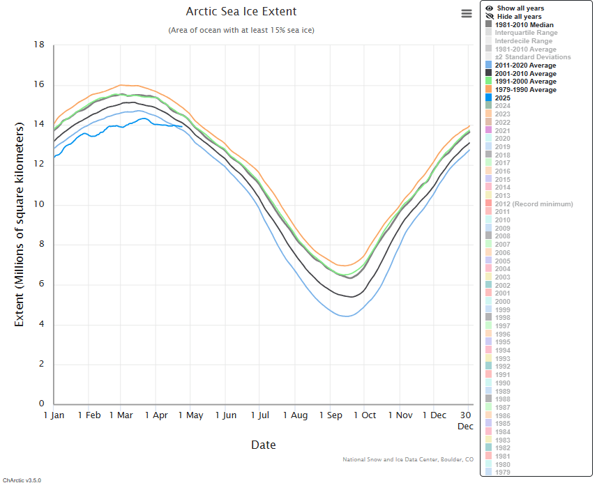 2025 has brought the third largest amount of sea ice in the current decade (as at date of writing), will soon be second largest and may also get to top spot. That is an amazing recovery from being the slowest and lowest ice forming year prior to almost a month ago.